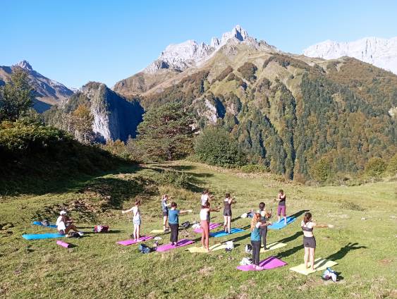 Sur le chemin du Pic d’Annie ou à vélo dans le cirque de Lescun avec les accompagnateurs de montagne, sur un tapis de yoga face aux Pyrénées, à la ferme “Les Caprices” ou au refuge de L’Abérouat avec nos éleveurs et producteurs locaux… nous sommes ravis d’avoir pu faire partager aux étudiants venus de toute la France un moment authentique auprès des habitants de notre territoire.